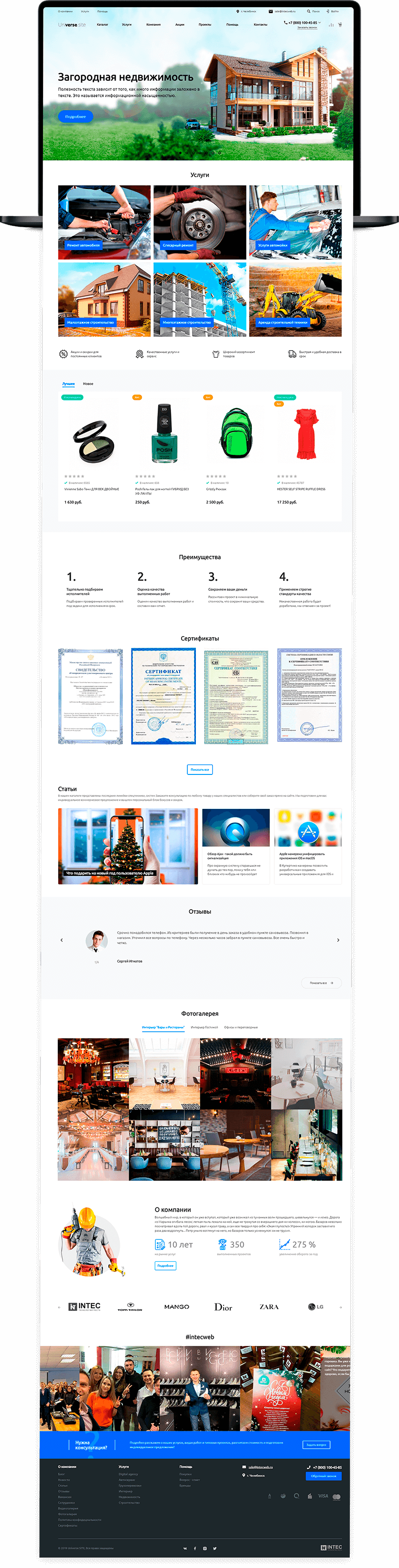 Готовое решение INTEC: Universe.site обладает широкими функциональными возможностями, удобным интерфейсом и гибкими настройками дизайна. С помощью нашего решения, все услуги и акционные страницы вы сможете легко оформить в виде LandingPage и объединить их на одном корпоративном сайте. Теперь вы сможете совместить информативность и удобство традиционного корпоративного сайта с эффективностью Landing Page.